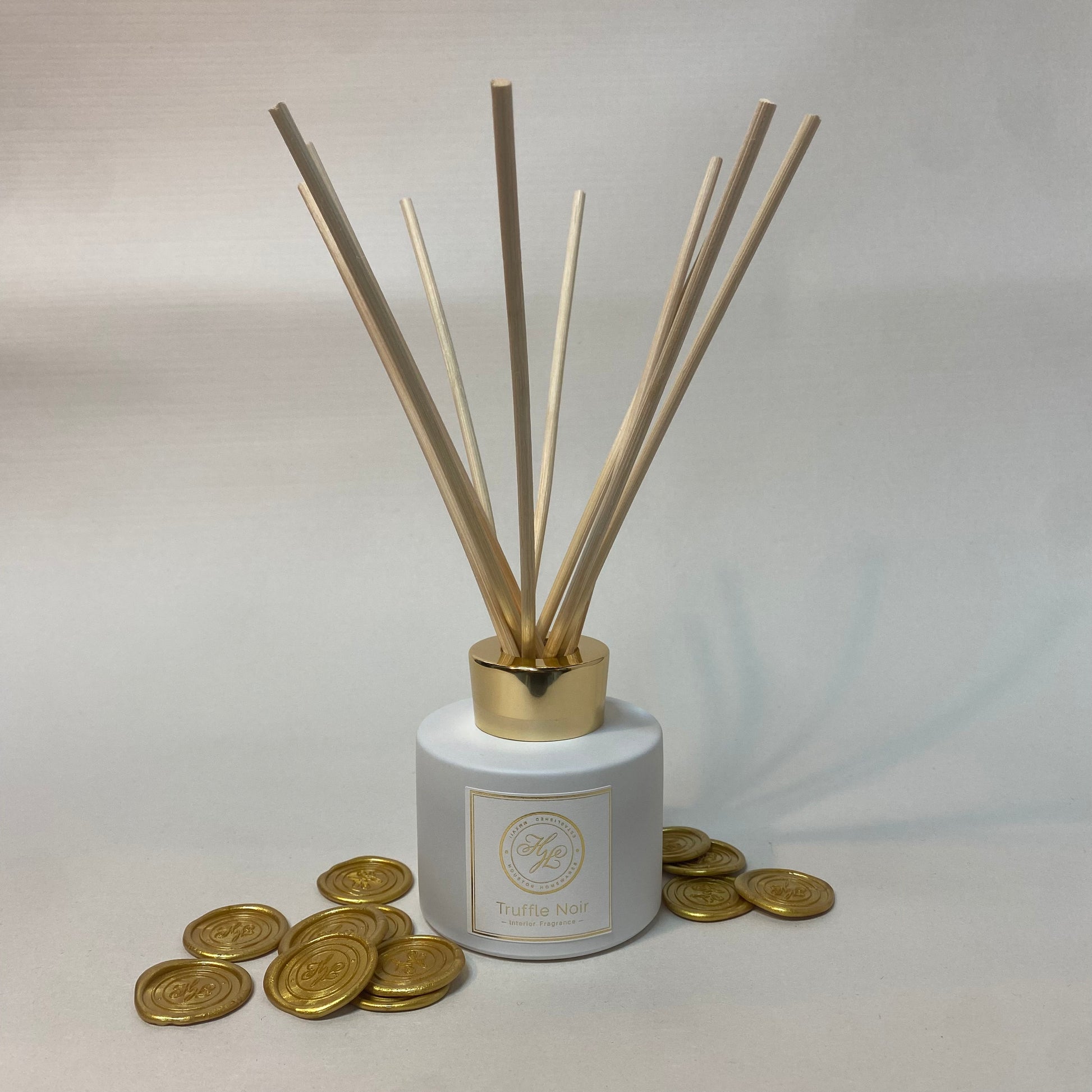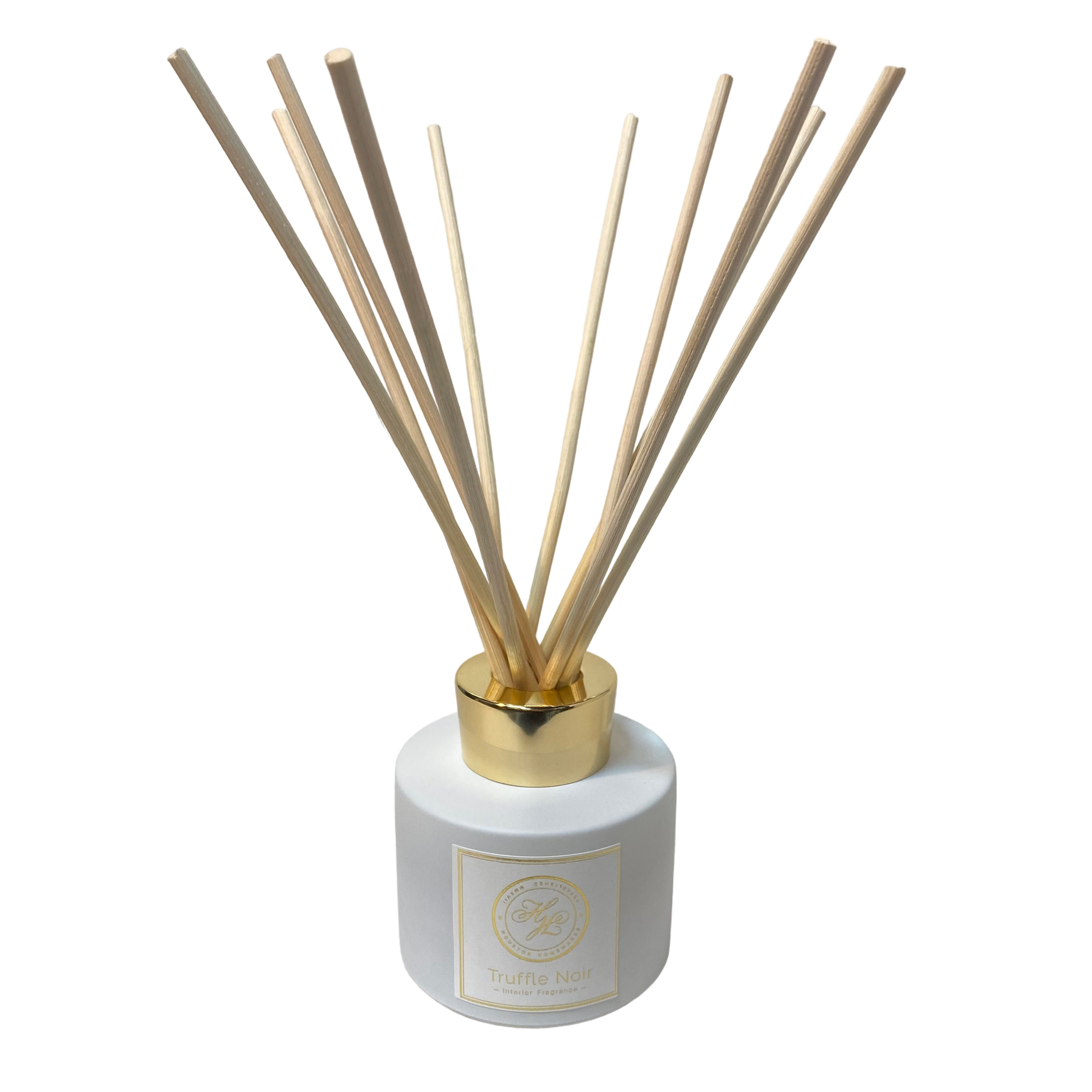 Houston Homewares Interior Fragrance luxury reed diffuser. A calming aromatic scent with ylang ylang, blackcurrant and jasmine on a base of dark chocolate and truffle. A decadent fragrance for a relaxing evening in and also makes for a perfect gift.