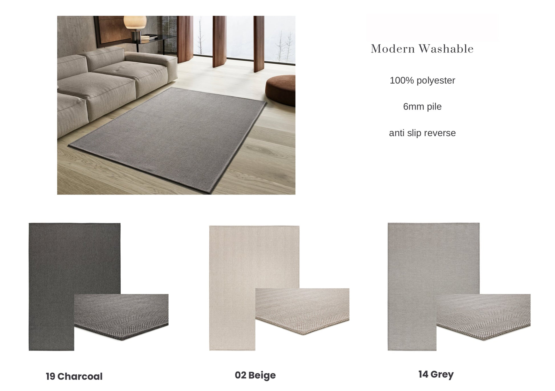 Beige Herringbone Washable Rug 160x230cm