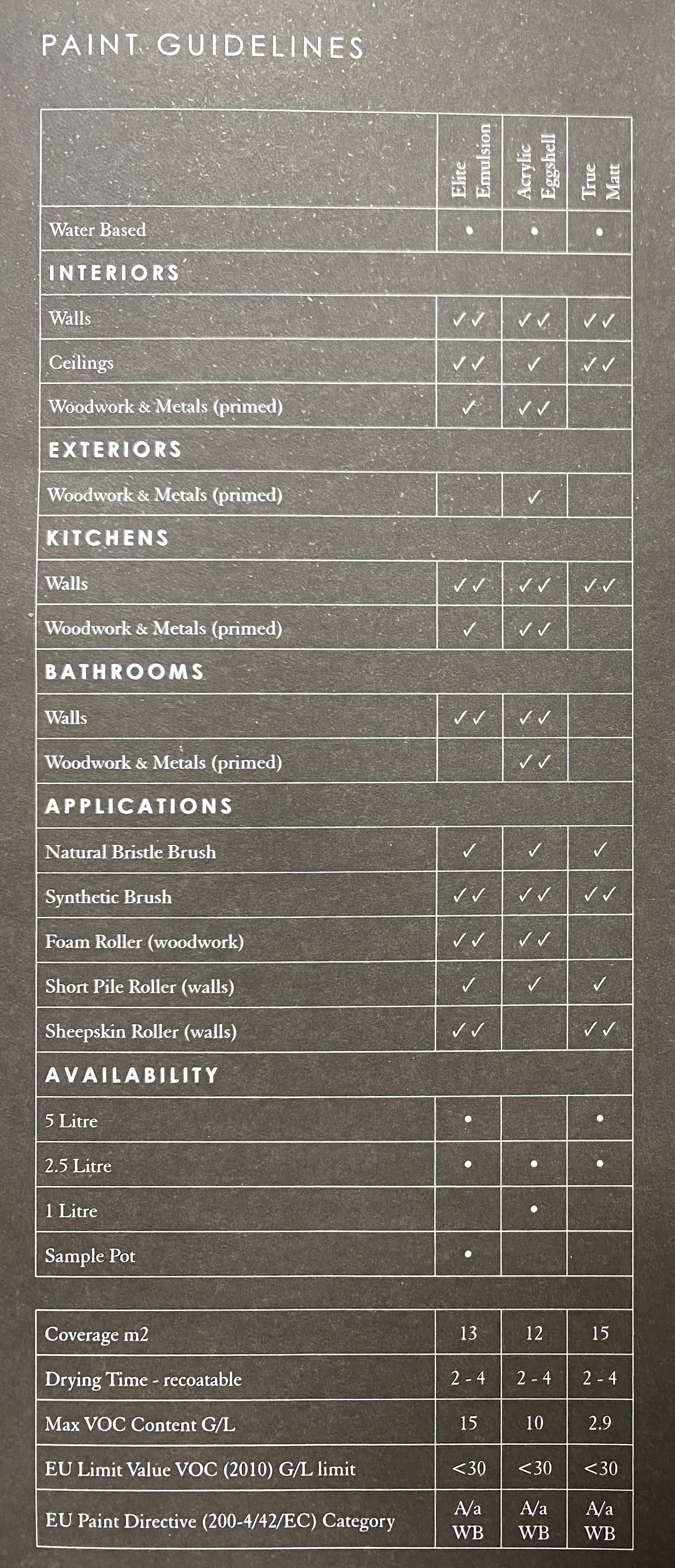 It is important to note sample pots come in Elite Emulsion finish and colour may appear slightly different to True Matt and Acrylic Eggshell due to the difference in sheen.
